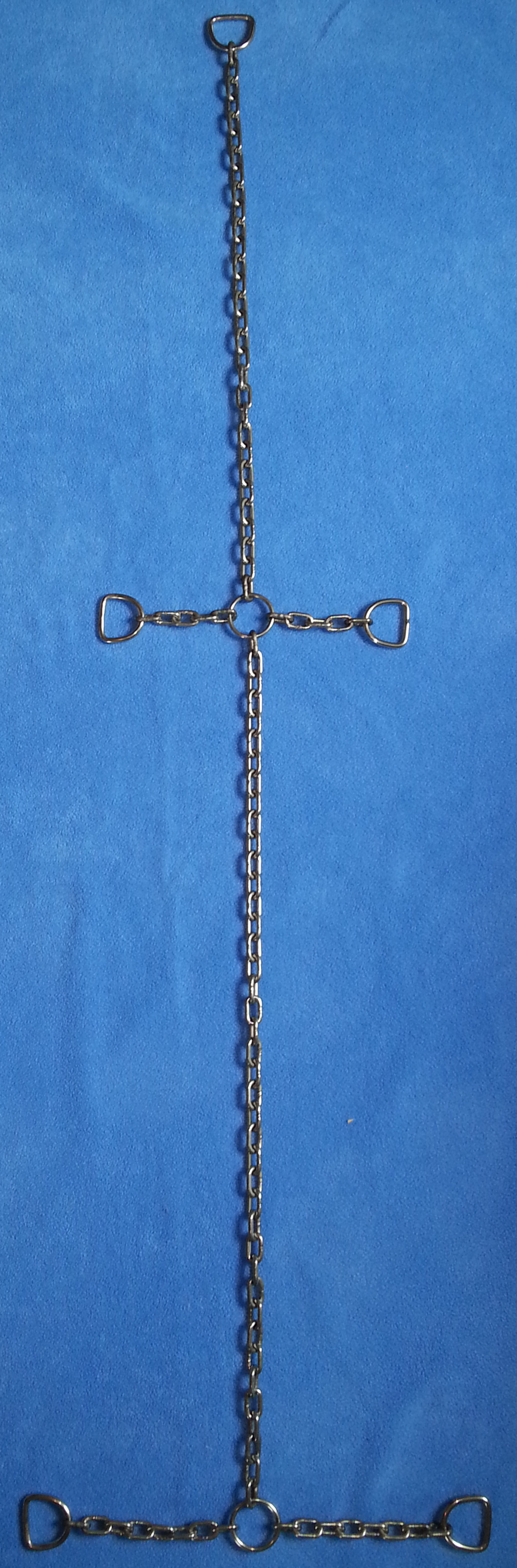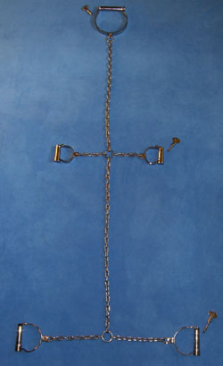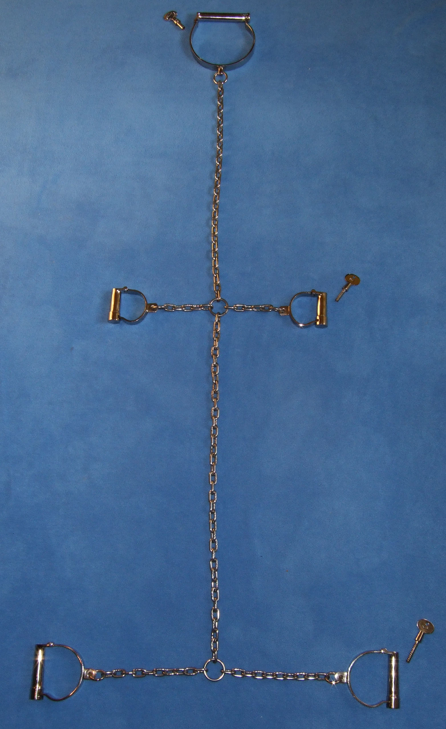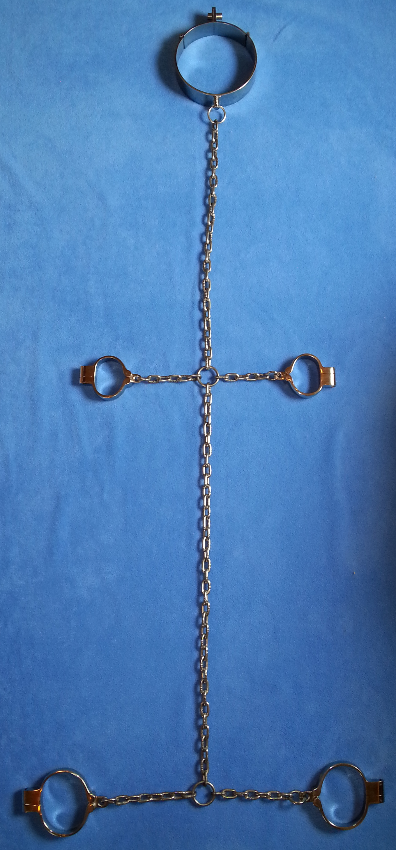 number of standard configurations : Neck-Wrist-Ankle Wrist-Ankle connected in a I-shape Wrist-Ankle connected in a X-shape Neck-Wrist Bellychain with Handcuffs and connecting chain to Legirons Other models on request |